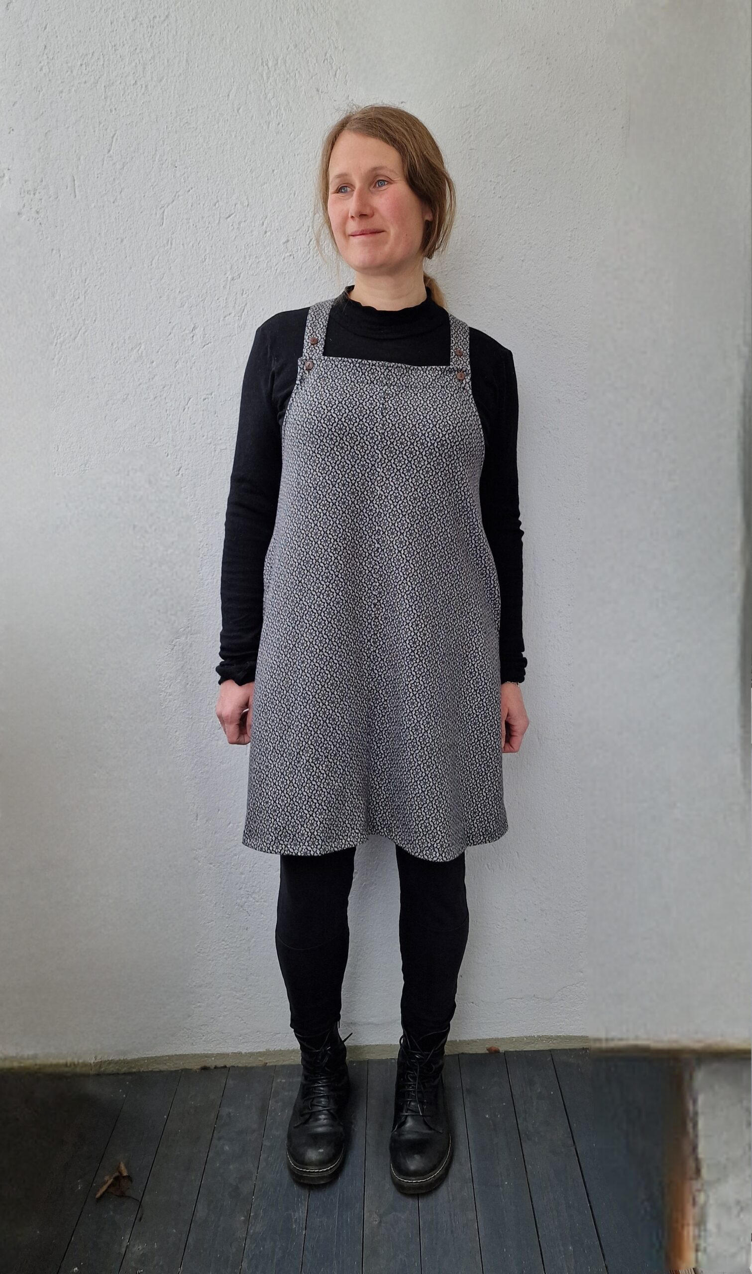 Kauniisti kuviodusta ja hyvin laskeutuvasta Jacquard kankaasta ommeltu lapputunika / lyhyt mekko henkseleillä. Tämä vaate sopii käytettäväksi ympärivuoden!