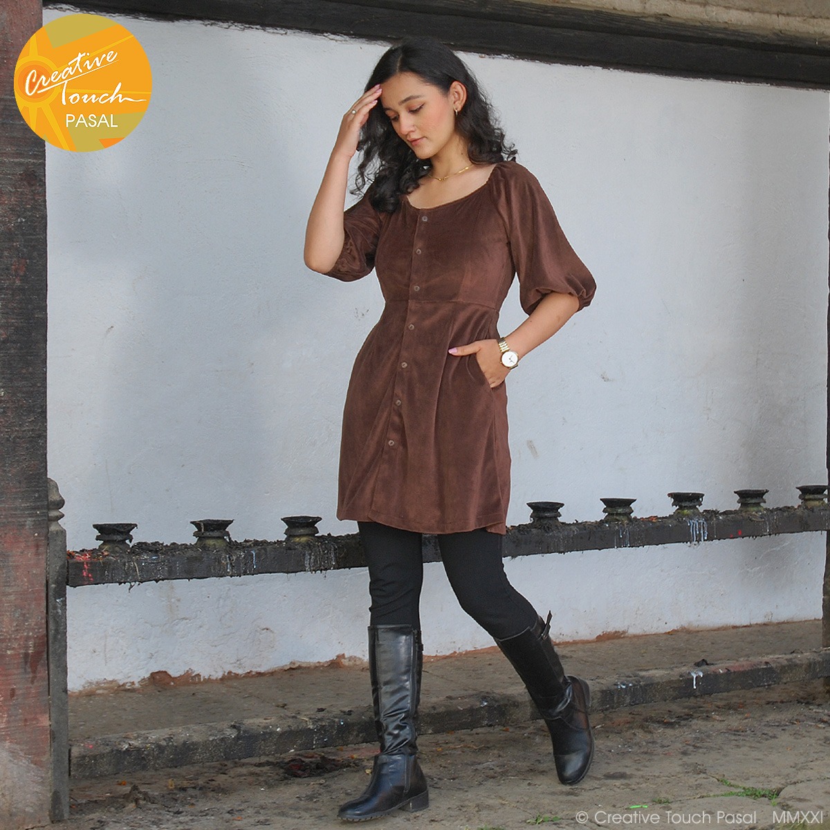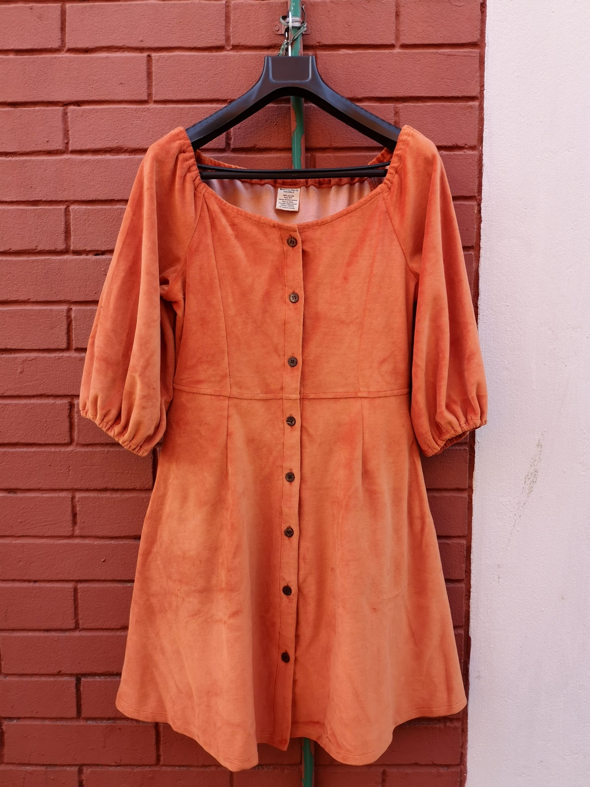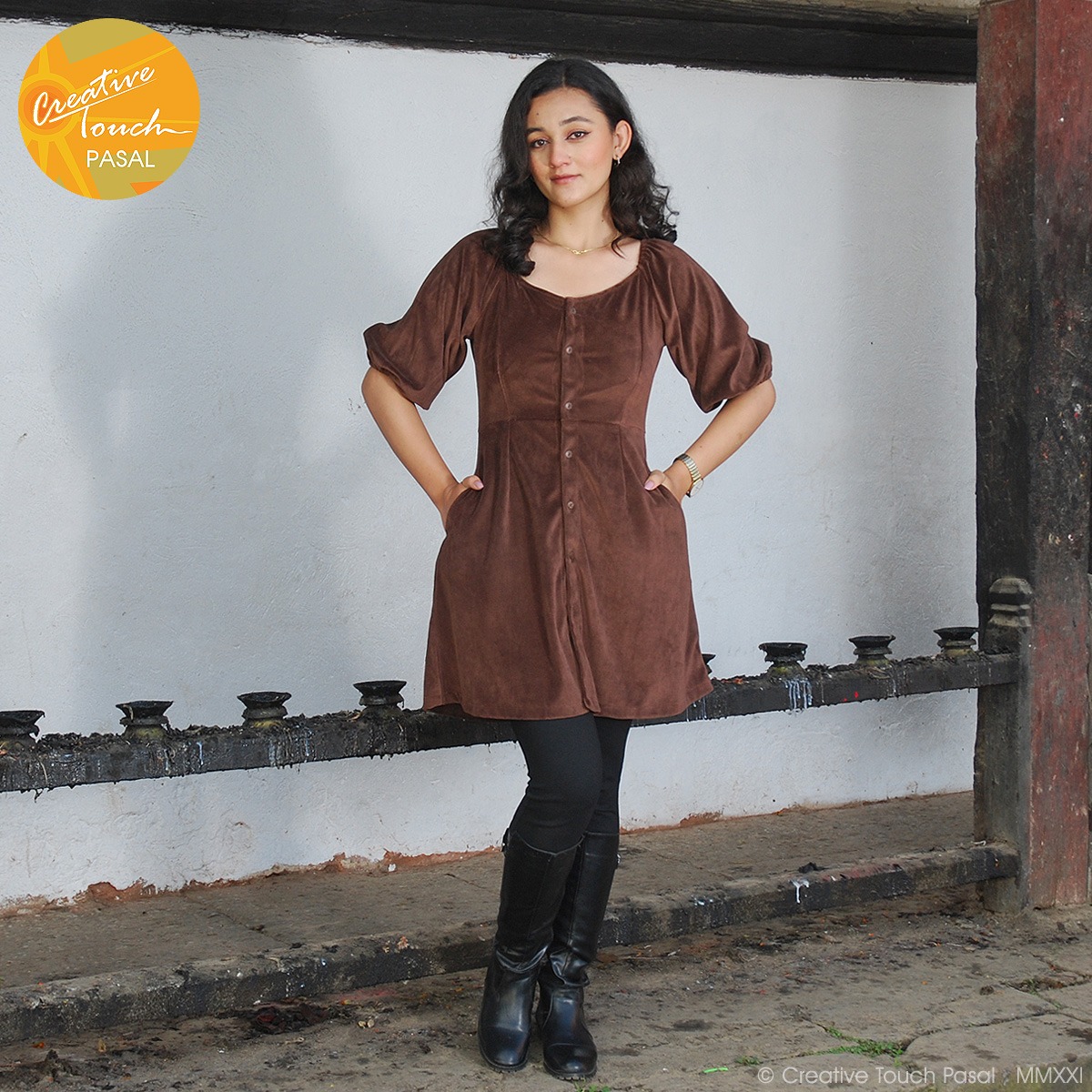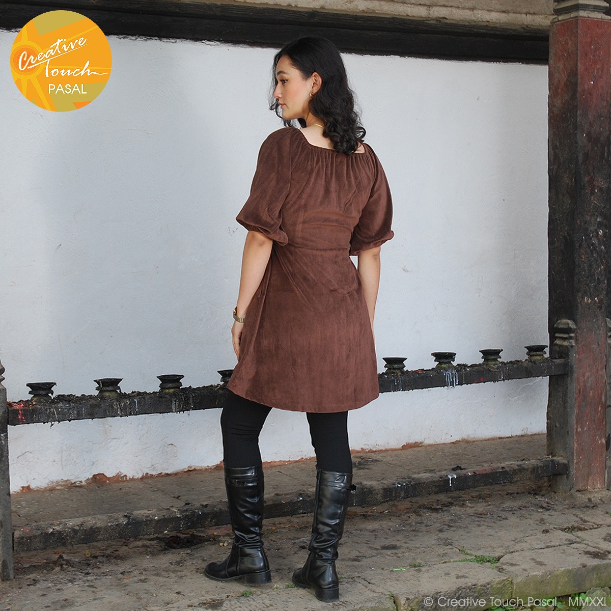 Meena samettimekossa on kauniit kookosnapit etuosassa ja näyttävät puhvihihat.