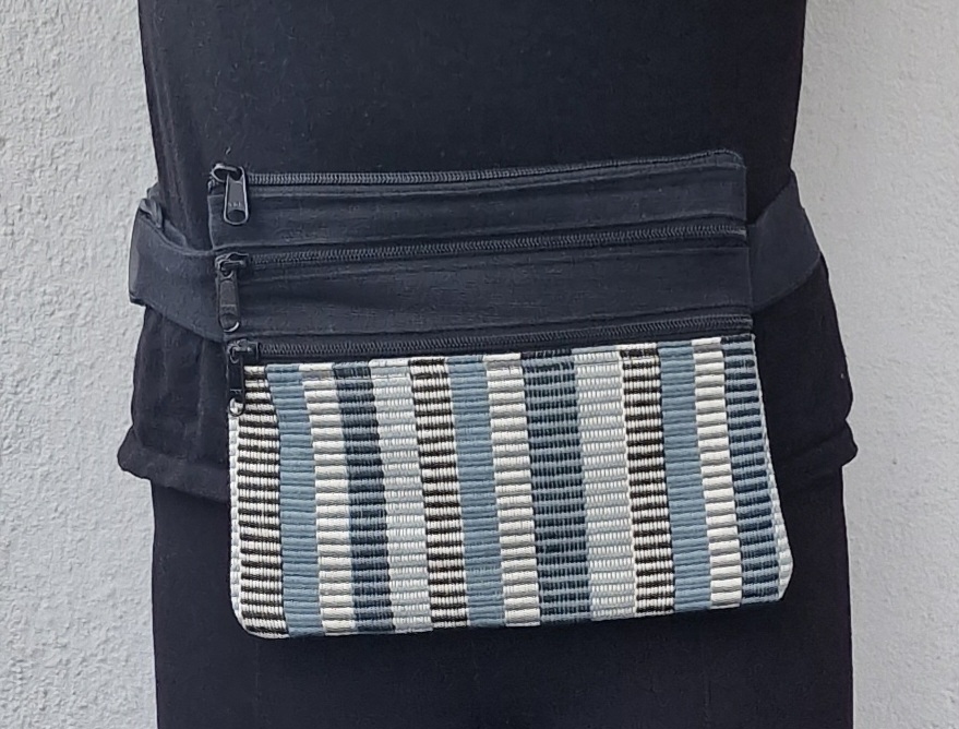Rina vyölaukussa on kolme vetoketjulla suljettavaa taskua.