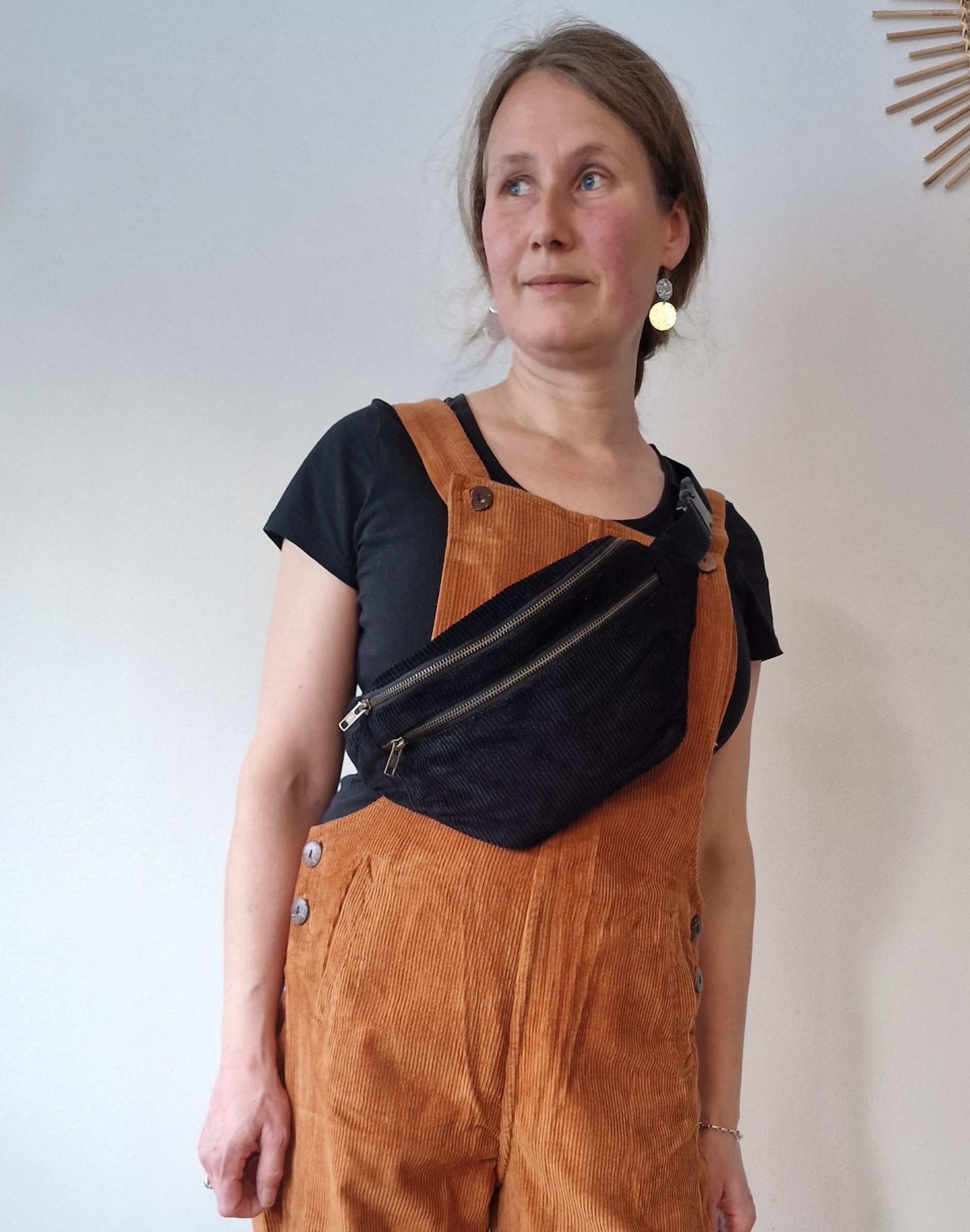 Laukut on valmistettu muun vaatetuotannon (mm. Sanu vakosamettihaalareiden) leikkuun ylijäämäpaloista.